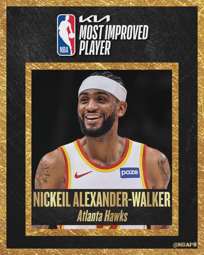 北京時間4月25日,NBA官方宣布:老鷹球員亞歷山大-沃克當選本賽季常規(guī)賽進步最快球員。值得一提的是,上賽季這個獎項的獲得者是老鷹球員戴森-丹尼爾斯。老鷹成為NBA歷史上第一支,連續(xù)兩年包攬進步最快球員獎的球隊。